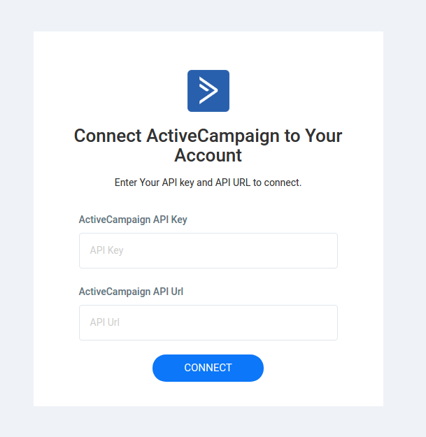 After you clicked on the Connect button, you will be asked to input your ActiveCampaign credential to access the API key and URL. Each ActiveCampaign account is associated with API key and API URL as soon as your account is created on their platform.