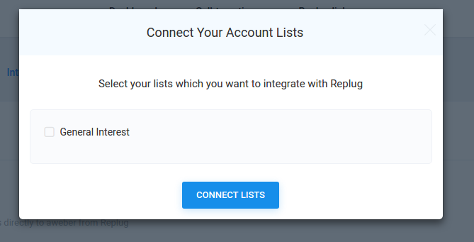 Once you have successfully connected, you will need to select the lists that you would like to integrate with the Replug platform. After that click on the Save button.