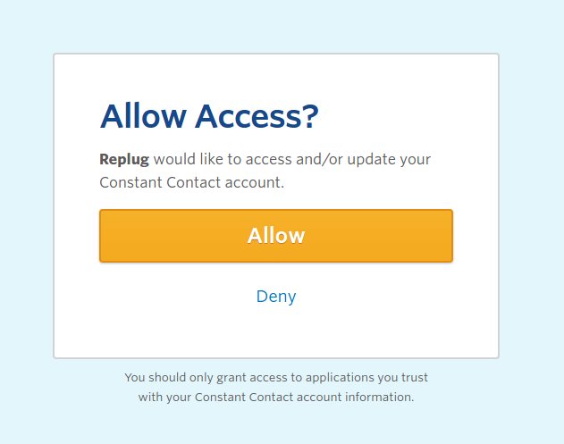 Once your credentials are verified, you will be asked for the Replug authorization.