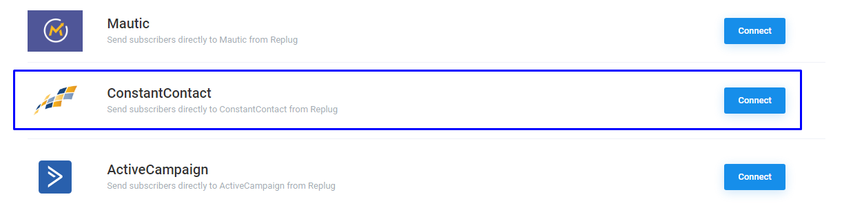 That's it, you're all set. Create a campaign in the Replug, select the Gist as an email service provider in the CTA type, and we will send any names and email addresses right into that ConstantContact list.