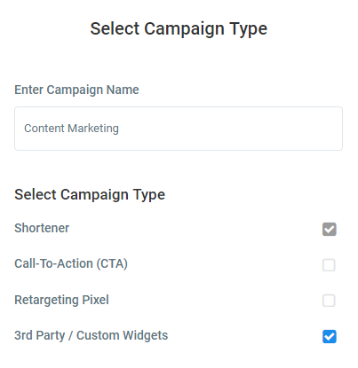 Log into your Replug account, click on the Campaign to create a campaign positioned on the navigation menu and select the 3rd Party / Custom Widgets as a