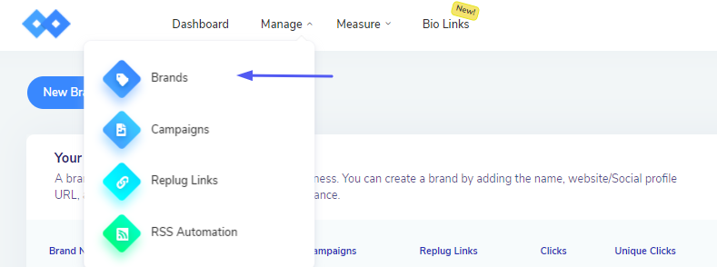 1. Choose Brands option from Manage Tab