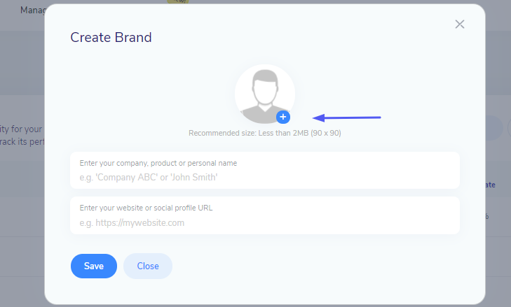 While creating a brand, click on the Profile Image to upload your brand image/ logo