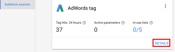 After clicking on the Audience Manager, select Audience Sources from the page. Click on the Details link.