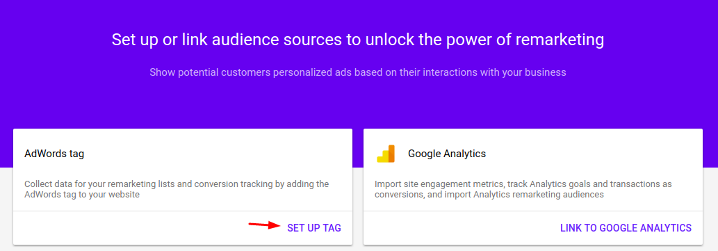Scroll down and open up the drop-down for AdWords Tag setup Instruction and tag code.