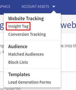 Sign into the Linkedin Ads Manager. Once you are there, click on the Insight Tag: