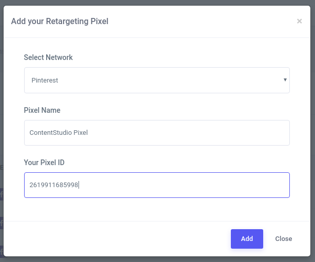 In order to start capturing the data through the Retargeting Links, you need to add the Pinterest Conversion ID for the retargeting pixel.