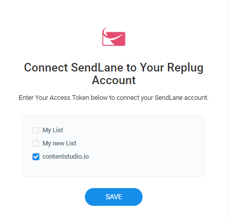 Once you have done successfully, You will have to select the list, you'd like to connect with the Replug, then click on the Save button.