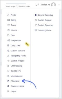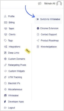 To switch to the White-Label version, just click your profile name or icon at the top right corner.