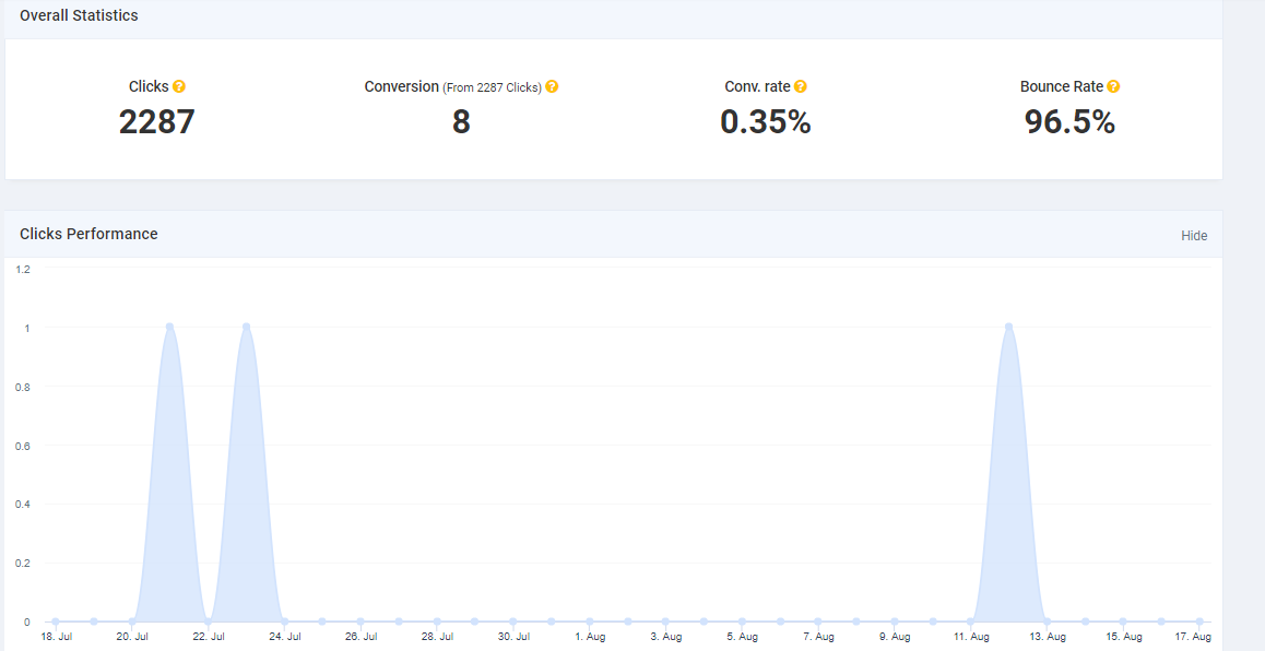 3. Click on View status so you can view the overall performance of the link and leads generated