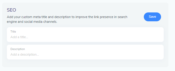 Add your custom meta title and description to improve the link presence in search engines and social media channels.