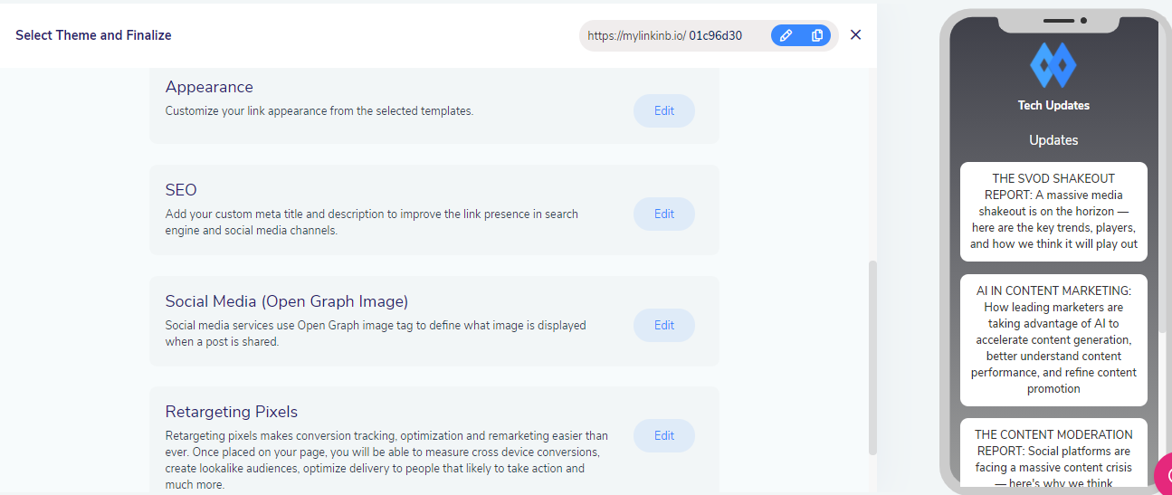 This article will demonstrate the use of other options once you have added the content and personalized your Bio Links.