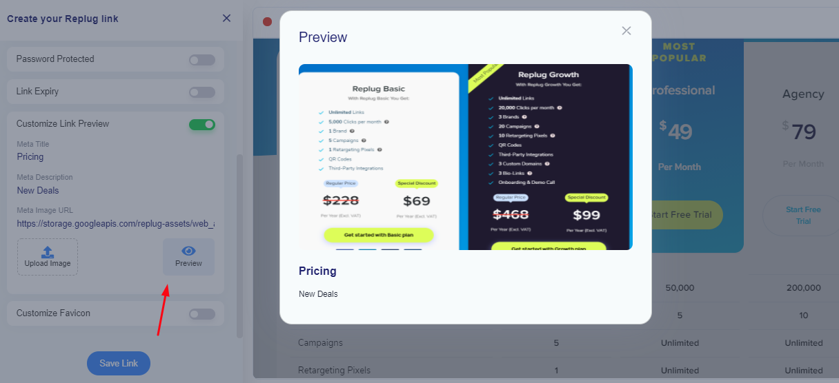 Once you click on preview, it will show you the Customized Link Preview as shown below.