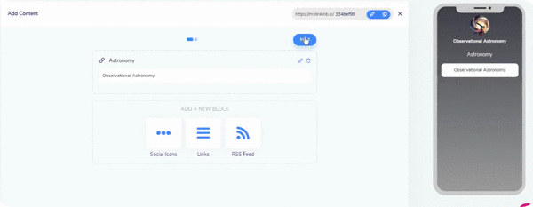 Please grasp details from the GIFs illustration on creating Bio Links adding Links as a Block from scratch.