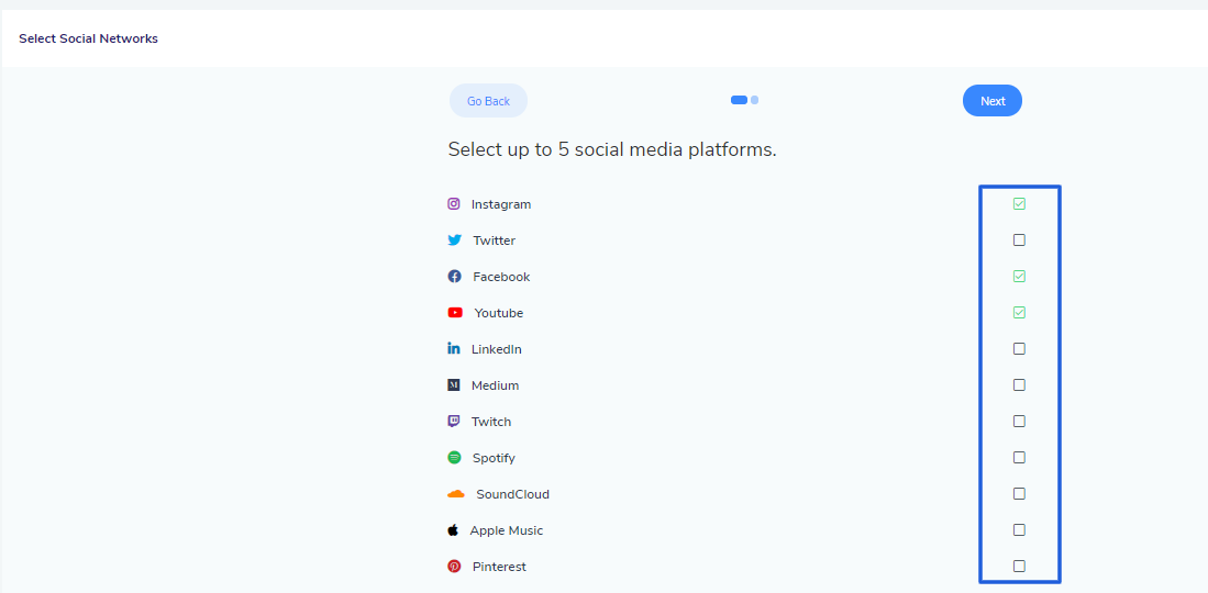 Now, choose any of the 5 Social Networks you want to add to your block.