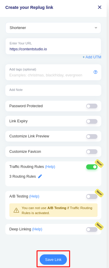 Enable the toggle for Traffic Routing Rules and click on Add New Rule.