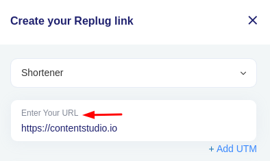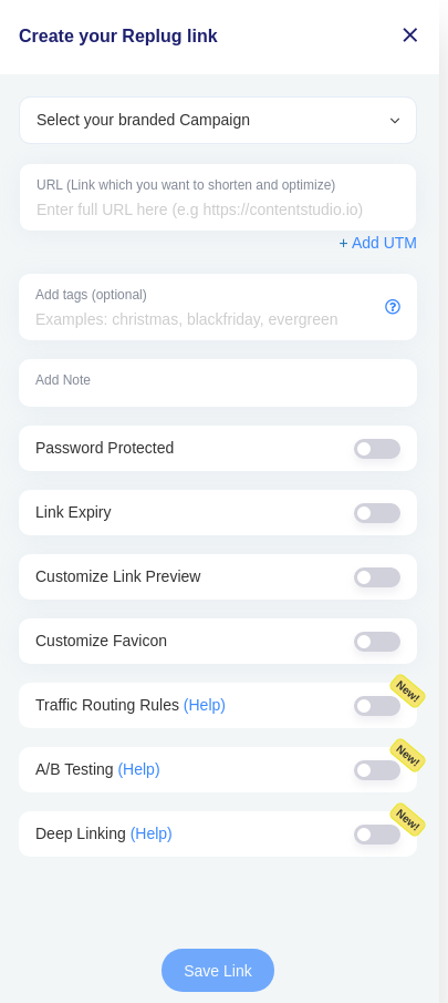 Create Your Replug Link will appear asking for several inputs according to the brand/campaign you selected or created.