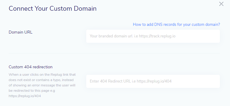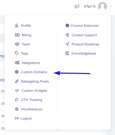 From the Replug dashboard, hover over to Settings and click on the Custom Domains.